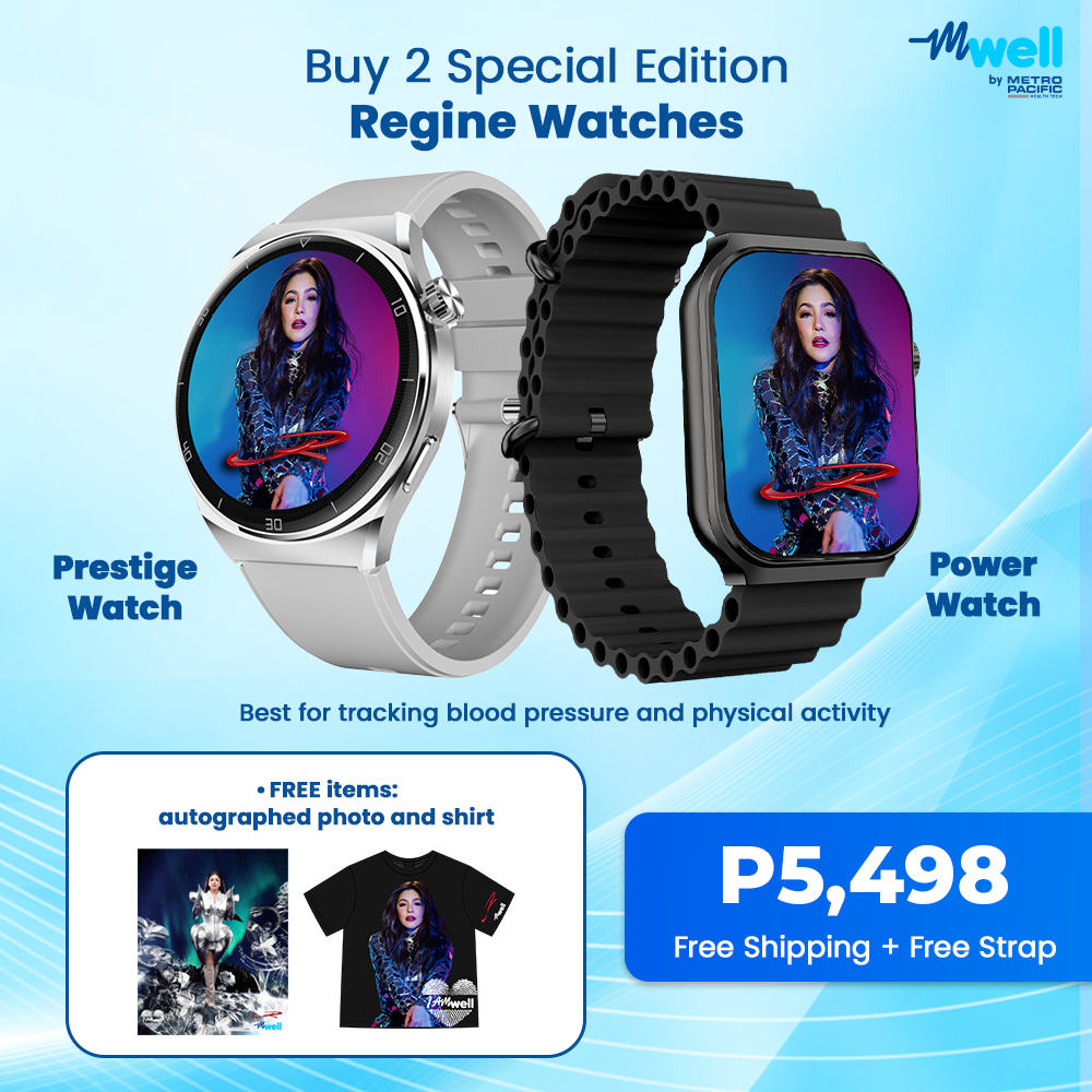 One for you and your loved one. This limited edition Regine Prestige and Power Watch combo features Asia's Songbird and Wellness Champion, and comes with freebies such as a free ticket to the Super Divas concert and autographed Regine merchardise!